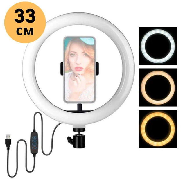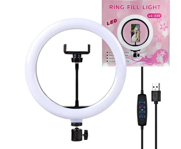 Кільцева LED лампа LC-330 33 см з тримачем для телефону від USB