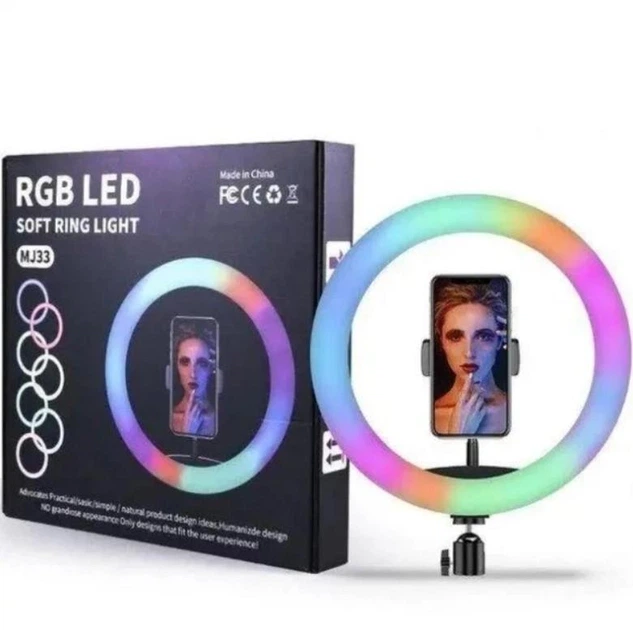 Світлодіодна кільцева LED лампа з кріпленням для телефону RGB MJ-33 33 см діаметр