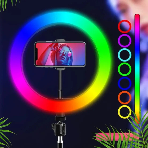 Кільцева LED RGB лампа MJ26 26см із тримачем для телефону від USB