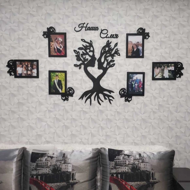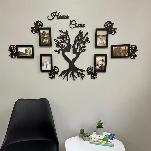 Рамка для фото,колаж, фоторамка з дереваСімейне Дерево, композиція, колаж з написом Наша сім'я і символічним панно (01172)
