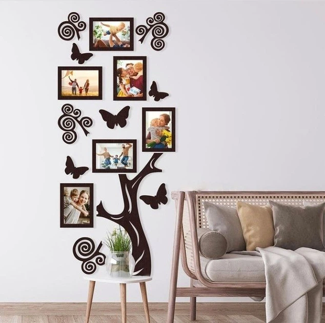 Настінна фоторамка вертикальне дерево 45х90 см коричневе на 6 фоторамок 9х13 см (M) (01064)