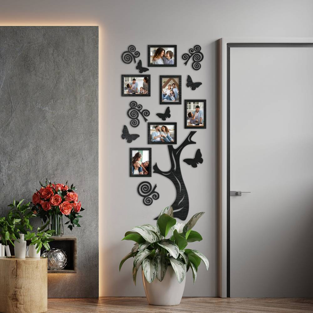 Настінна фоторамка вертикальне дерево 45х90 см чорне на 6 фоторамок 9х13 см (S) (01064)