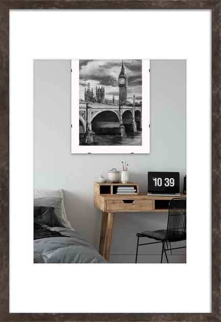 Фоторамка дерев'яна 40х60 під фото 30х40 багет: DL1906-07 Бронза з патиною (з акриловим склом 1.5мм, паспарту біле, двп) Emo