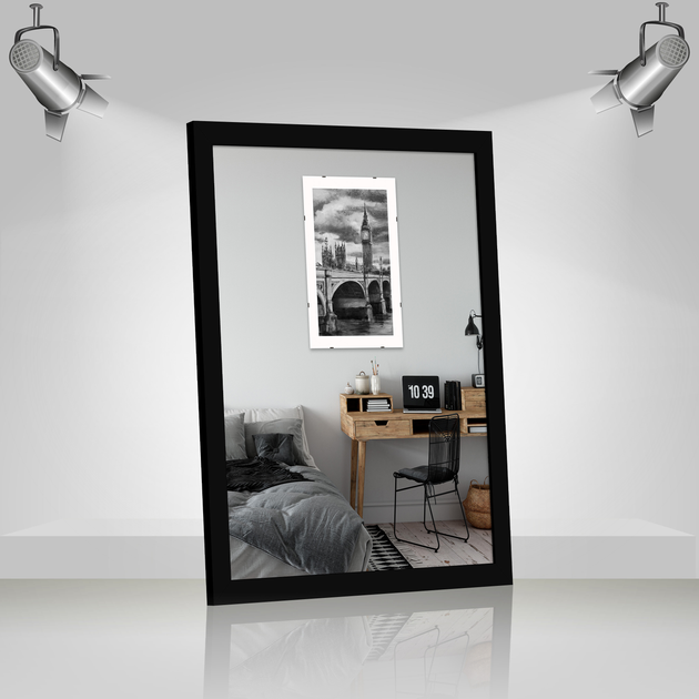 Рамка для фото дерев'яна 50х70 під фото 40х60 багет: DL2001-01 Чорний (з глянцевим склом 1-1.5мм, паспарту біле, двп) EmojiF