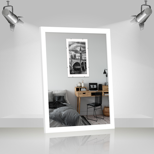 Фоторамка дерев'яна 50х70 під фото 40х60 багет: DL2001-02 Білий (з глянцевим склом 1-1.5мм, паспарту чорне, двп) EmojiFrame
