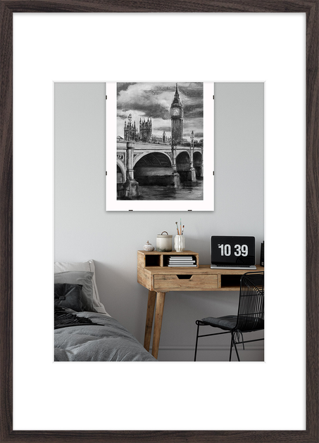 Фоторамка дерев'яна 42х60 під фото 30х40 багет: DL1906-06 Темне дерево (з антивідблисковим склом 2мм, паспарту біле, двп) Em