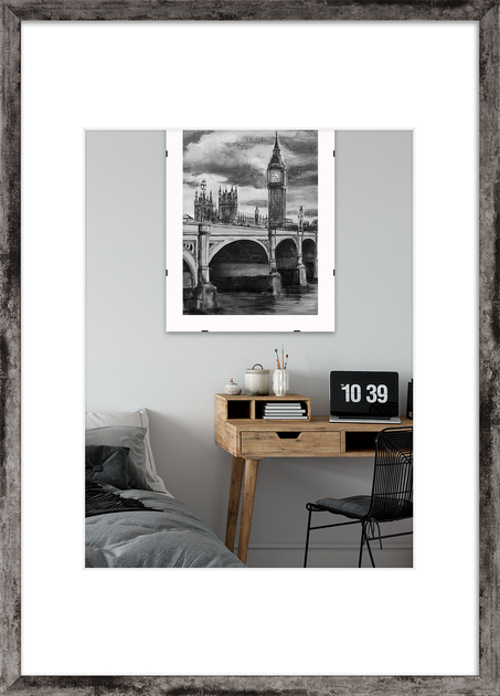 Фоторамка дерев'яна 42х60 під фото 30х40 багет: DL1906-08 Срібло із чорнінням (з акриловим склом 1.5мм, паспарту біле, двп)