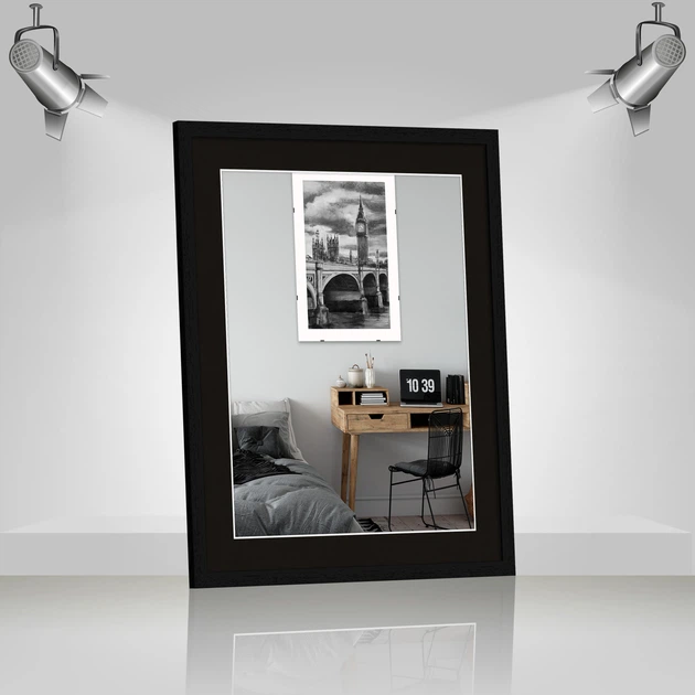 Рамка для фото дерев'яна 50х60 під фото 40х50 багет: DL2001-01 Чорний (з акриловим склом 1.5мм, паспарту чорне, двп) EmojiFr