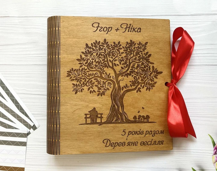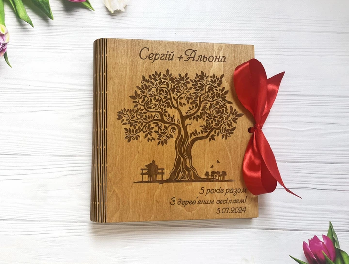 Фотоальбом Arty Craf із персоналізацією, подарунок на дерев'яне весілля (аркуші 22х17 см)