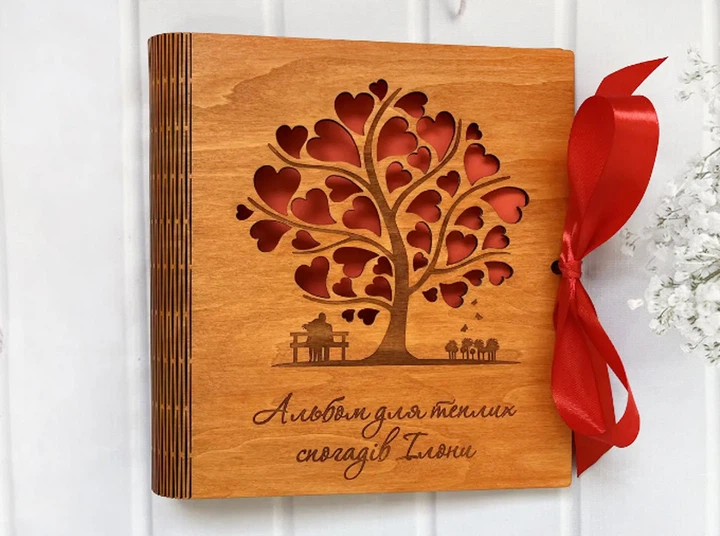 Дерев'яний фотоальбом Arty Craft з гравіюванням на замовлення, аркуші 22х17 см