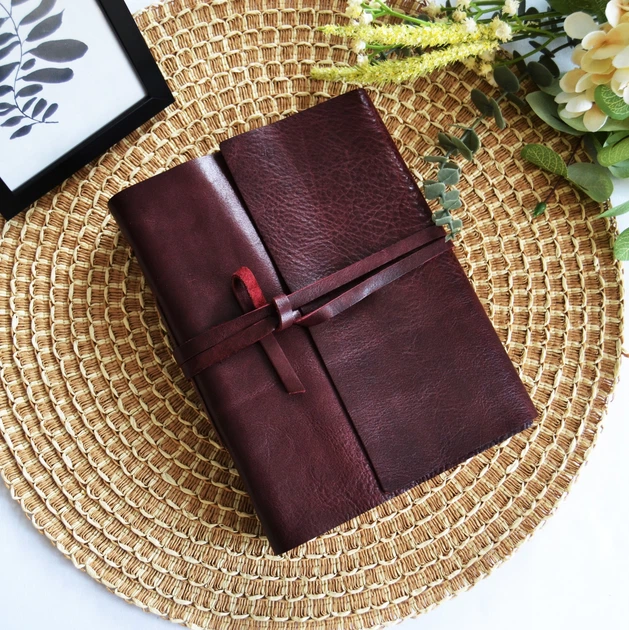 Фотоальбом з натурально шкіри, Книжковий переплет, Альбом на 100 фотографій, Ручна робота, Бордо FILWOOD