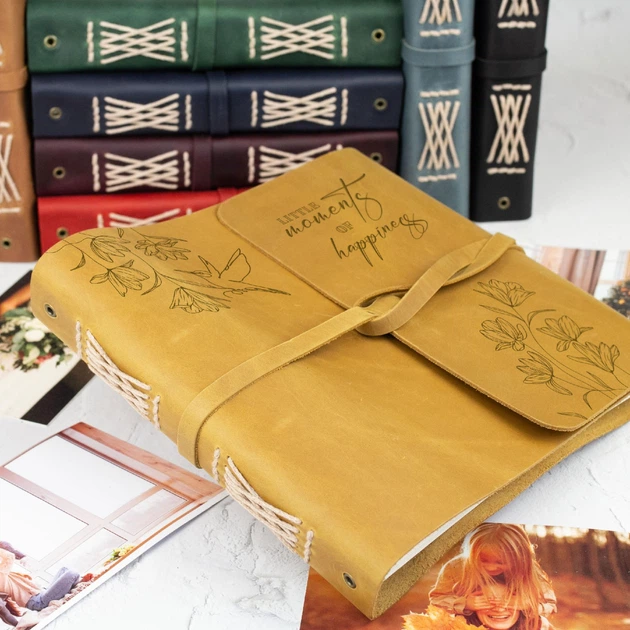 Персоналізований шкіряний фотоальбом, подарунок на річницю, 40 аркушів крафт, Sand, Malina Leather