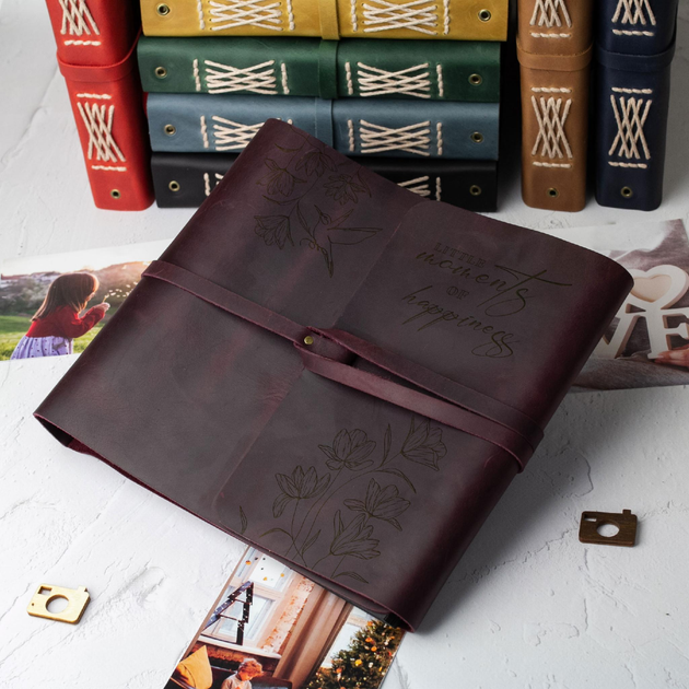 Персоналізований шкіряний фотоальбом, подарунок на річницю, 40 аркушів крафт, Burgundy, Malina Leather