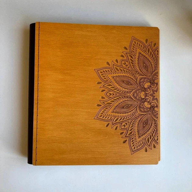 Дерев'яний фотоальбом 34х33,5 см на 200 фото з шкіряною вставкою та вашим написом FILWOOD