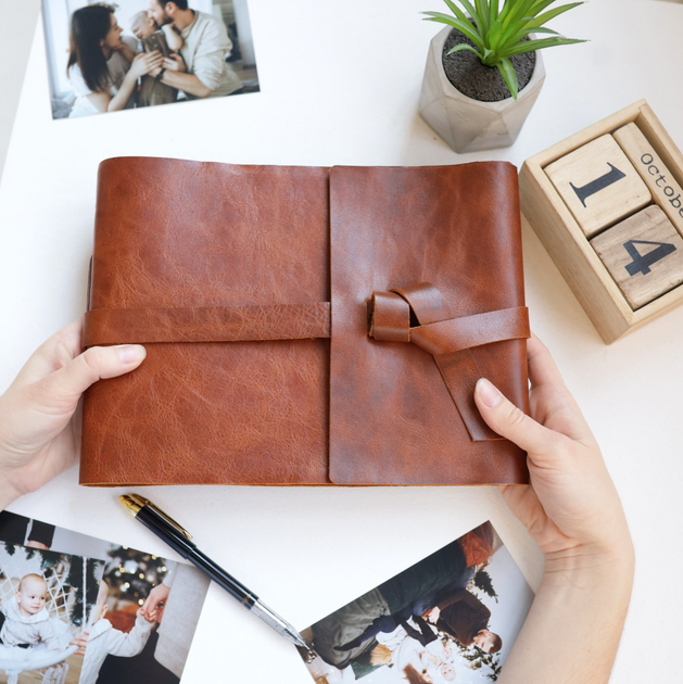 Фотоальбом з шкіри на 200 фото книжковий переплет персональне гравіюваня FILWOOD