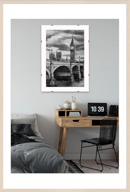 Фоторамка дерев'яна 80х120 під фото 70х100 багет: DL1906-01 Світле дерево (з глянсовим склом 1-1.5мм, паспарту біле, двп) Em