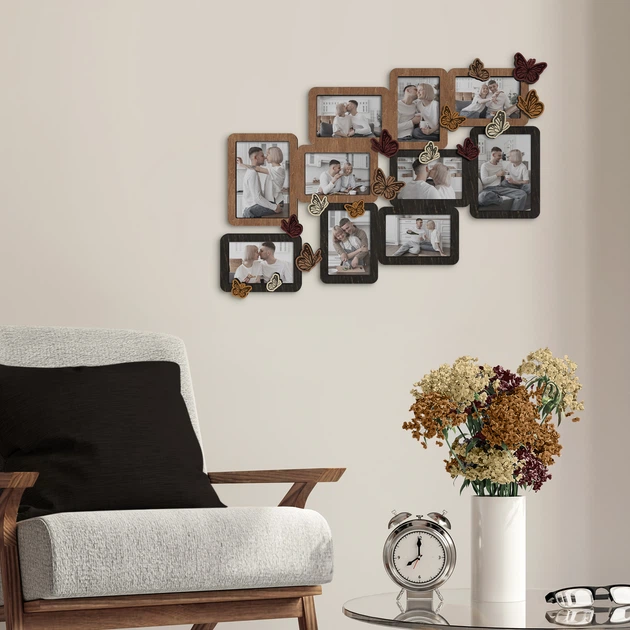 Настінна мультирамка на 10 фото з дерев’яними метеликами 71х53 см від The Frame Depot (butterfly)