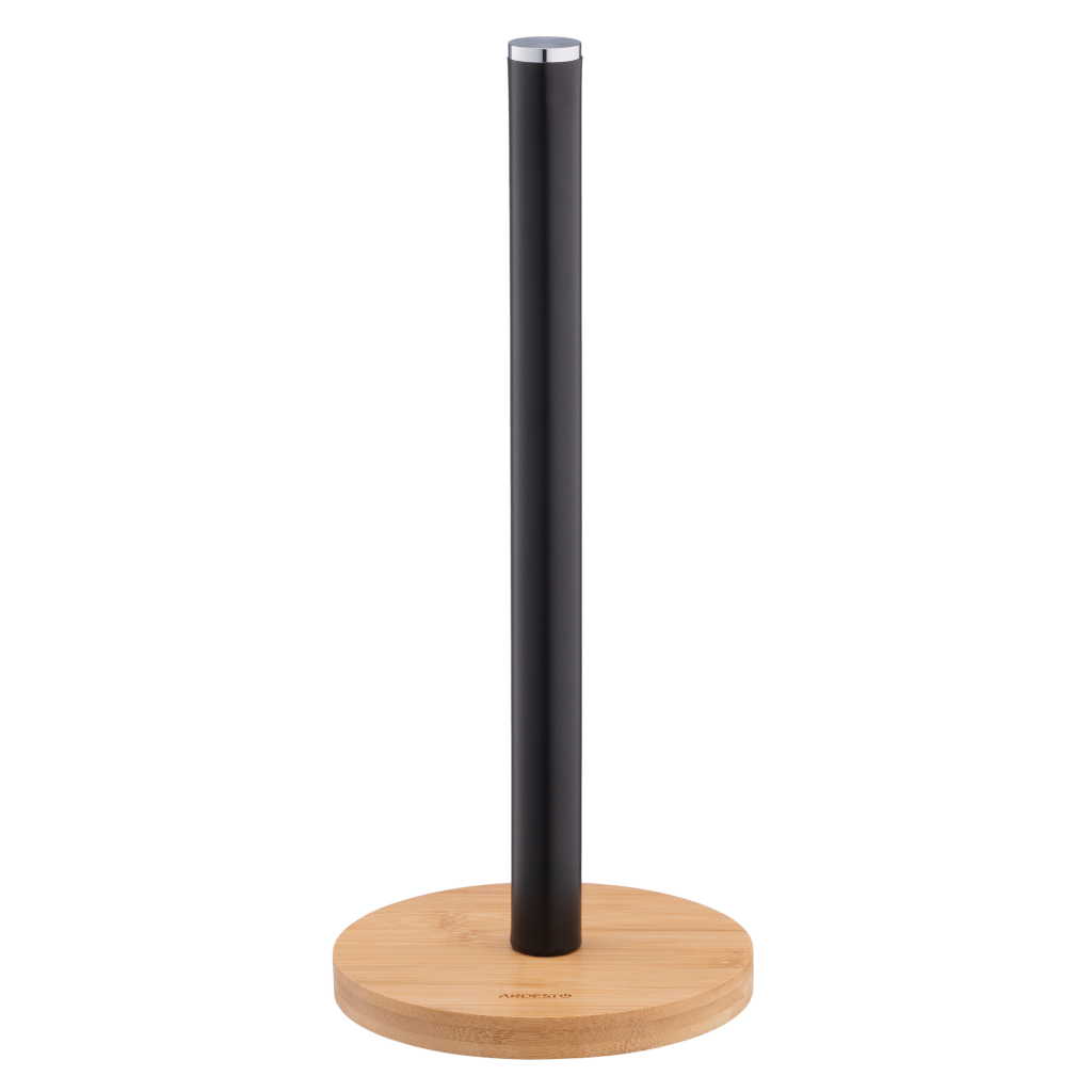 Функціональний і стильний тримач для паперових рушників ARDESTO Midori є аксесуаром, який зробить повсякдення на кухні зручним і організованим. Конструкція з металу чорного кольору та бамбуковою основою не займе багато місця на столі. Мити виріб в посудомийній машині не можна.