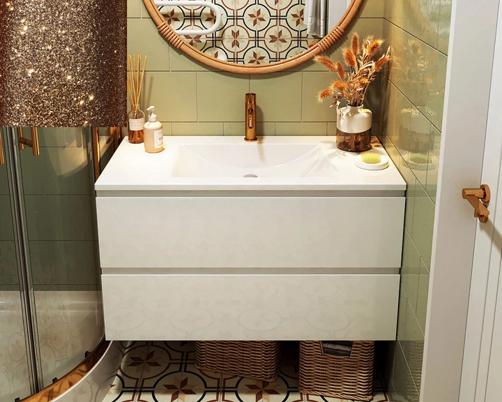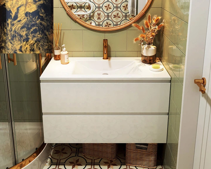 Тумба Ніколь 100 з умивальником та мармуровою стільницею, Слонова кістка