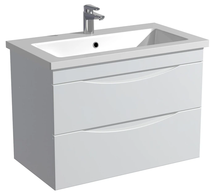 Тумба навісна Milleau Альфа 80 з умивальником Комо 80см для ванної кімнати біла