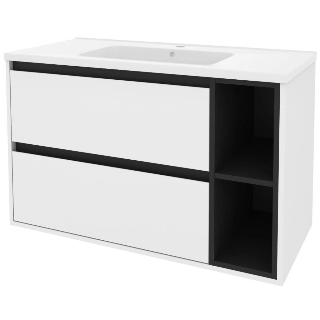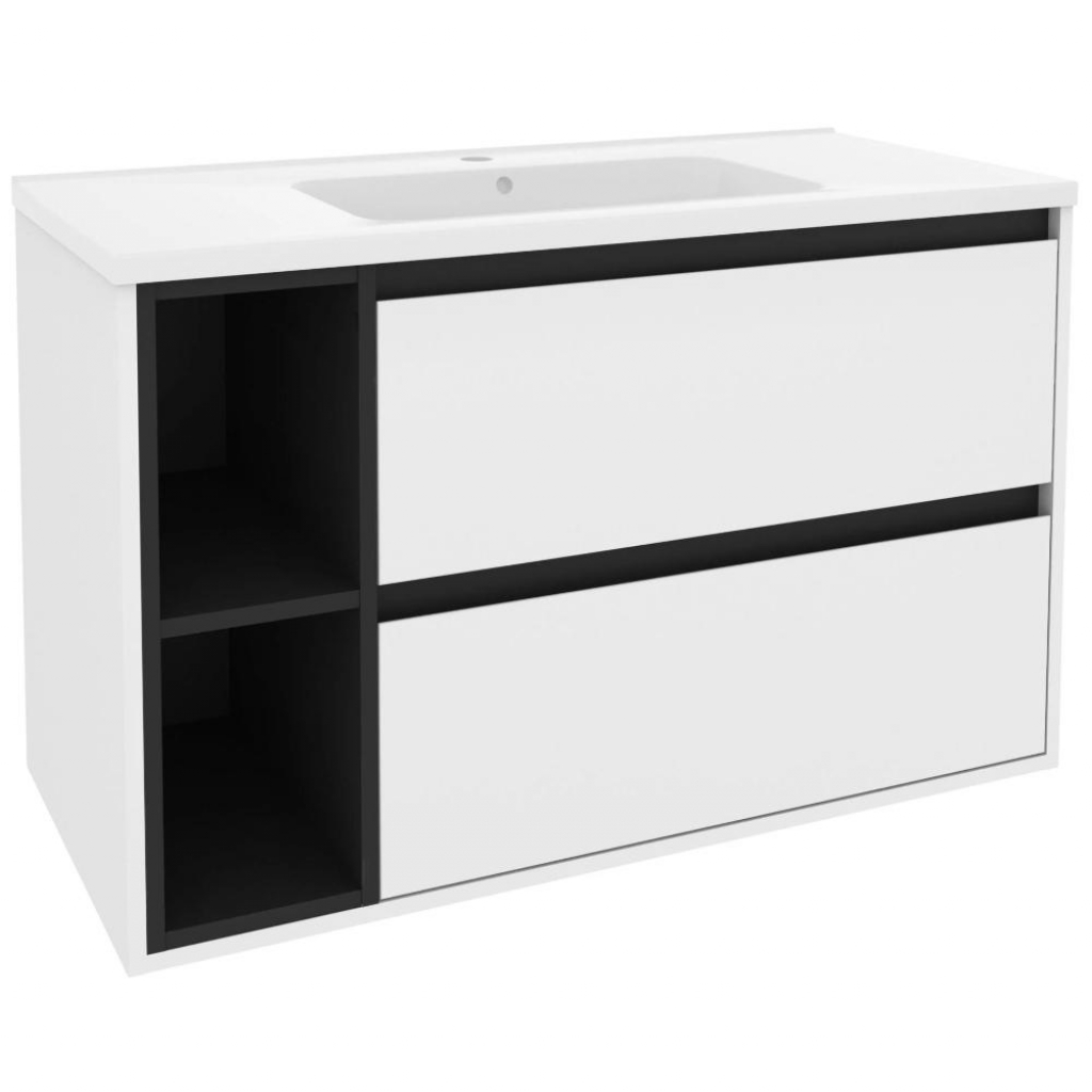 Змішувач в комплекті: Ні; Бренд: Mirater; Глибина, мм: 450; Колір: Білий-чорний; Країна виробництва: Україна; Матеріал фасаду: МДФ; Матеріал каркасу: ДСП; Матеріал умивальника: Штучний камінь; Серія: Айріс; Ширина, мм: 1000; Спосіб відкривання: Висувні ящики та полиці; Тип монтажу: Підвісний; Тип ручки: Накладна