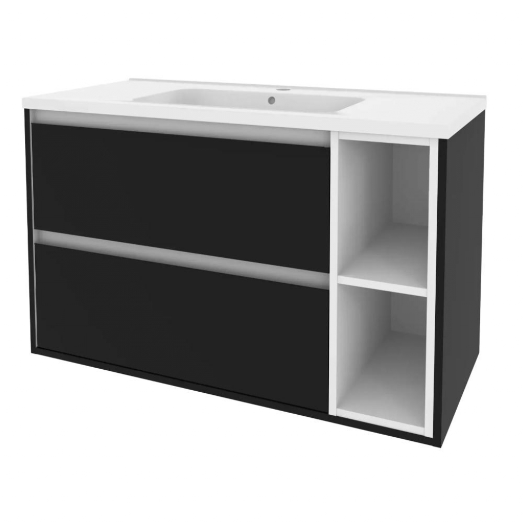 Тумба підвісна Mirater Айріс права 100 см з умивальником Родео чорна (00008366) С00008366