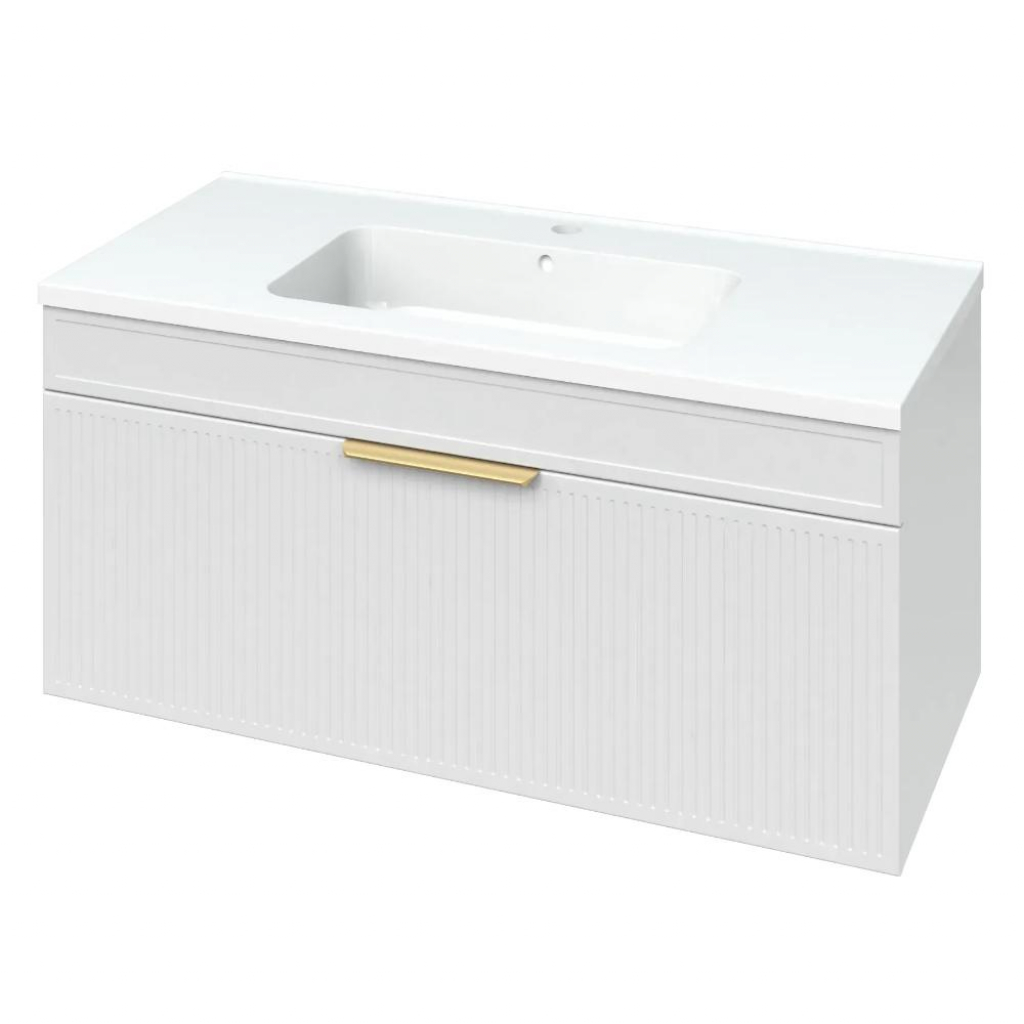 Тумба підвісна Mirater Айріс 100 см з умивальником Родео біла ліва (000008104) С00008104