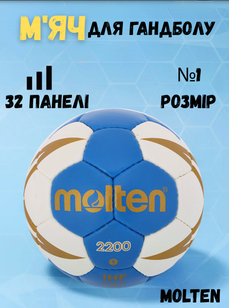 М'яч для гандболу MOLTEN H1X2200-BW (PU, р-р 1, зшитий вручну, синій-білий)