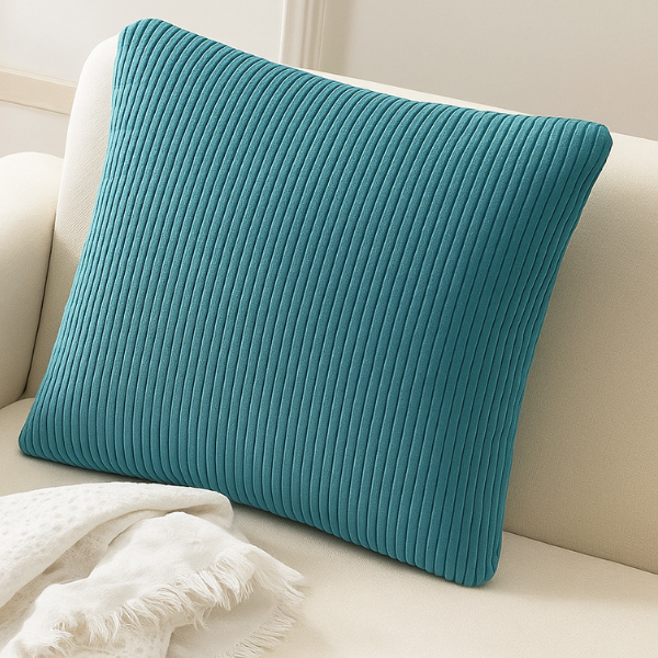 Велюровий чохол для подушки з меблевої тканини Lotos 85 у смужку блакитний 70x70