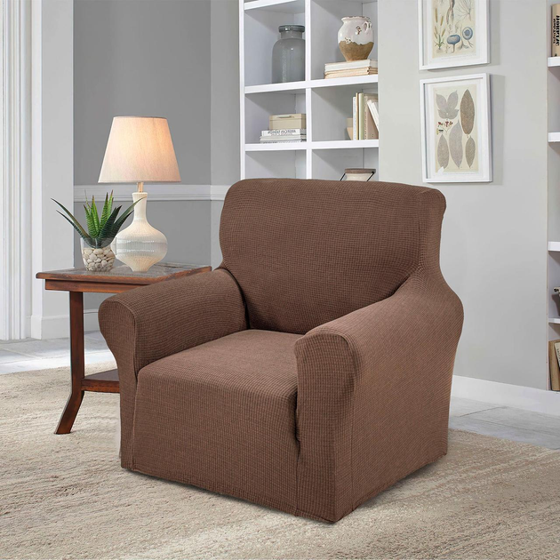 Коричневий чохол для комп'ютерного крісла (спинка + сидіння) Slavich стрейч-жаккард