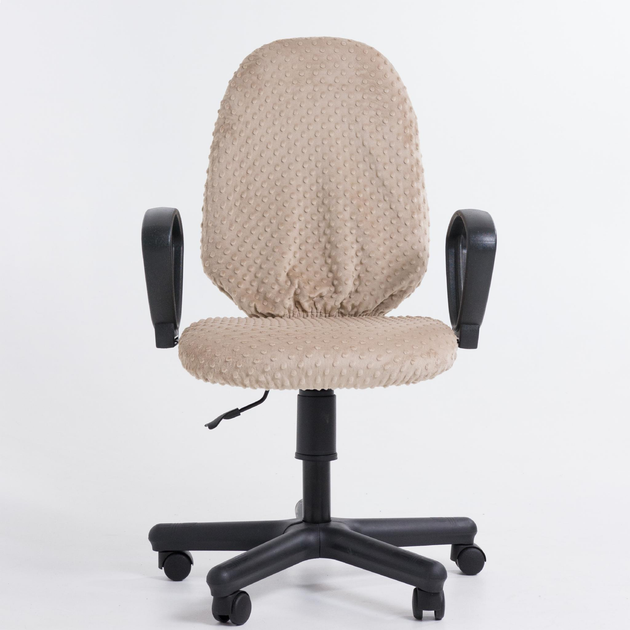 Універсальний плюшевий чохол з закритою спинкою на офісне крісло, натяжний на гумці, від MinkyHome Бежевий