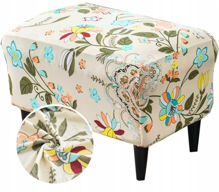 Чохол на пуф-підніжку, еластичний гладкий Domidekor Multicolored flowers 45 х 65 х 30 см (1141292574)
