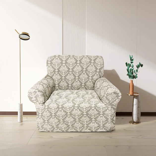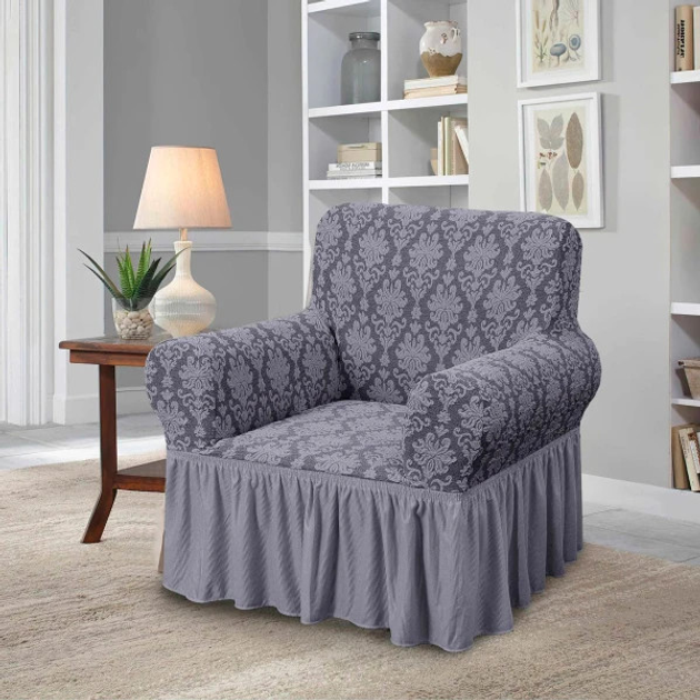 Чохол на крісло зі спідницею універсальний жакардовий Love You 82105 сірий