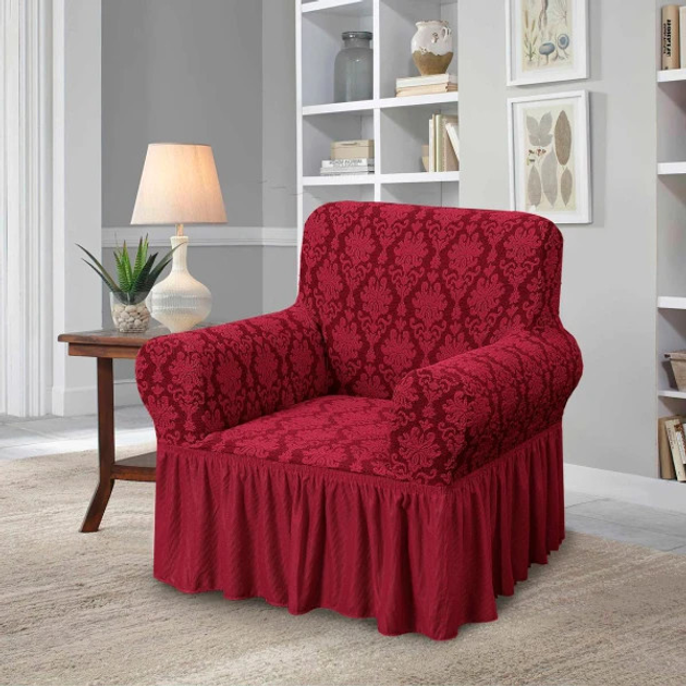 Чохол на крісло зі спідницею універсальний жакардовий Love You 82101 бордовий 5130720