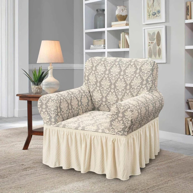 Чохол на крісло зі спідницею універсальний жакардовий Love You 82103 кремовий