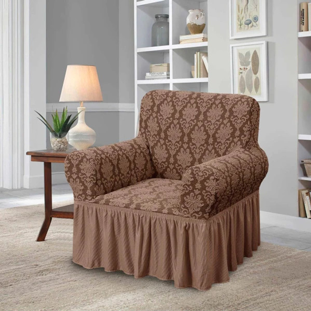 Чохол на крісло зі спідницею універсальний жакардовий Love You 82102 какао