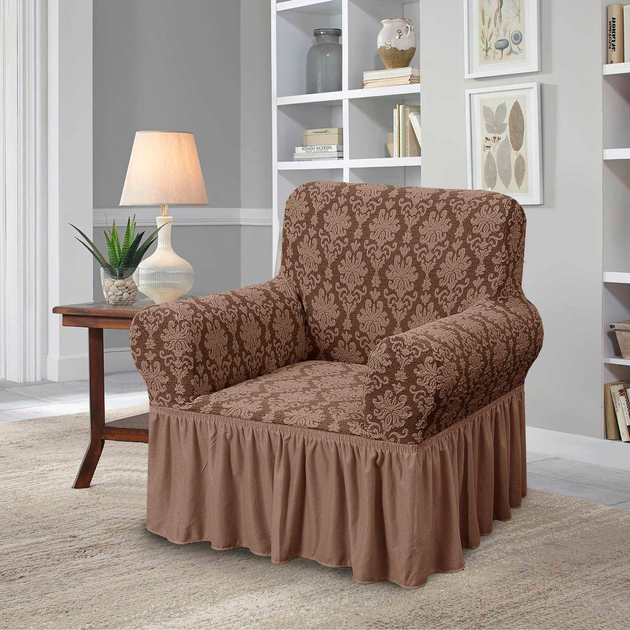 Чохол на крісло універсальний жакардовий Love You 82126 коричневий