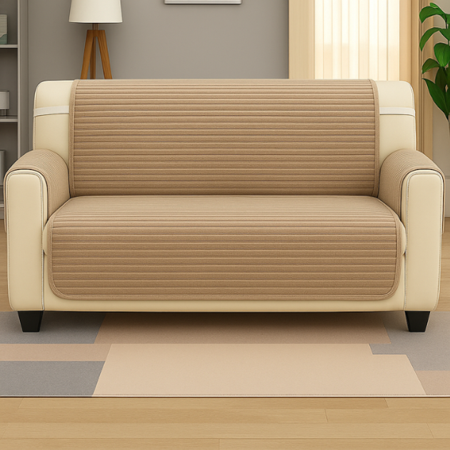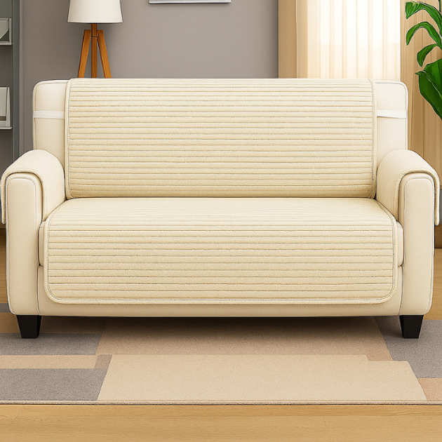 Накидка для сидіння на тримісний диван з меблевого велюру, колір кремовий 90х170
