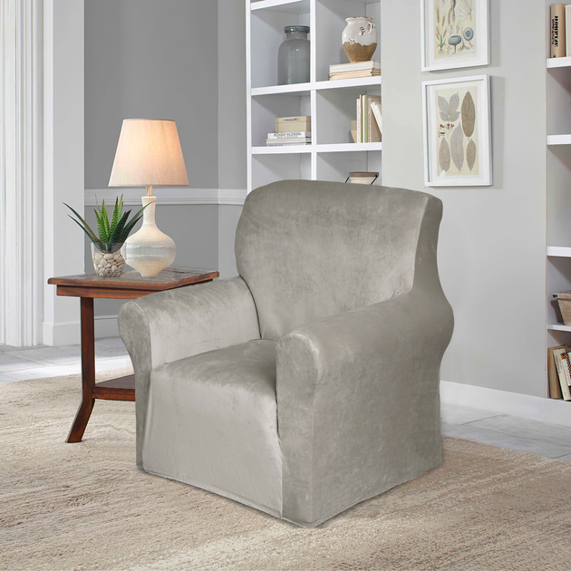 Чохол на крісло універсальний велюровий сірий Love You (A-025339)
