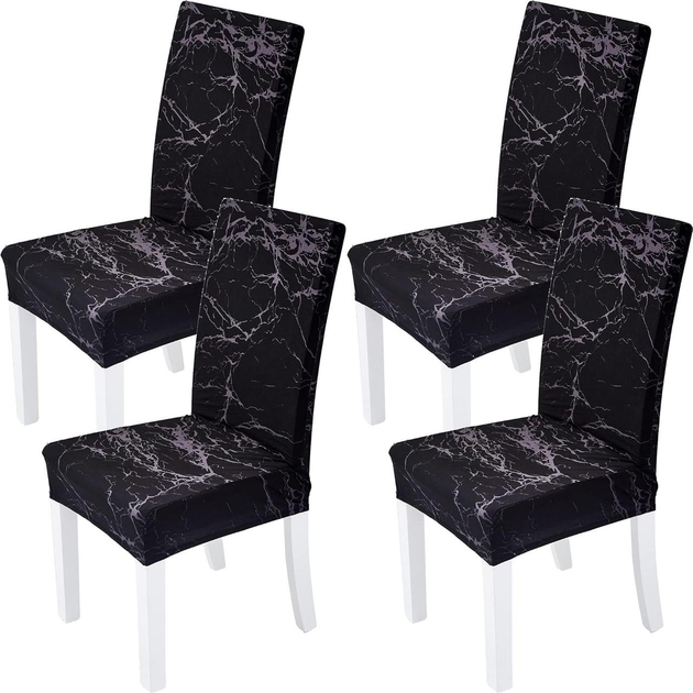 Набір чохлів для стільців для їдальні під чорний мармур Marble Pattern 4 шт