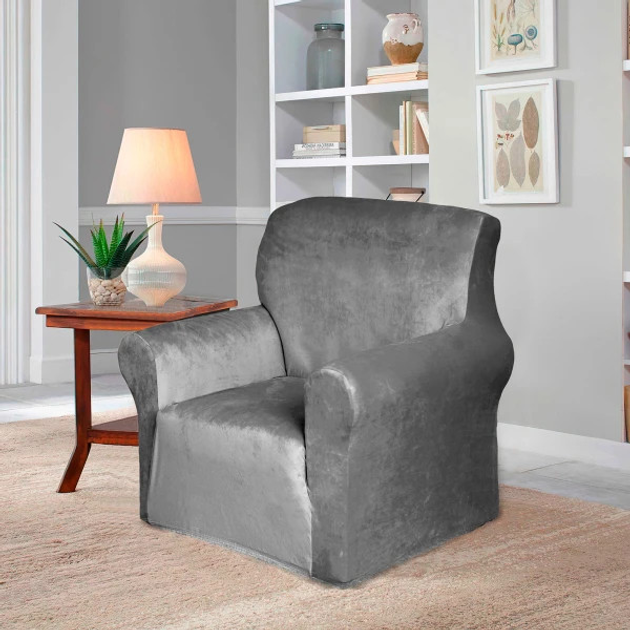 Чохол на крісло універсальний велюровий Love You 82120 світло-сірий