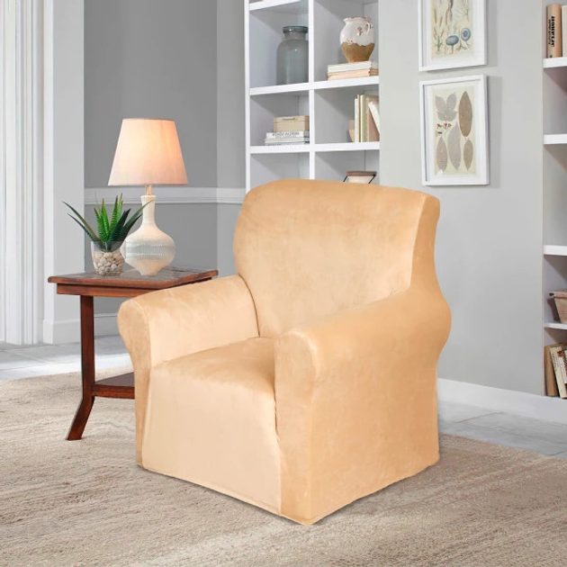 Чохол на крісло універсальний велюровий Love You 82117 бежевий