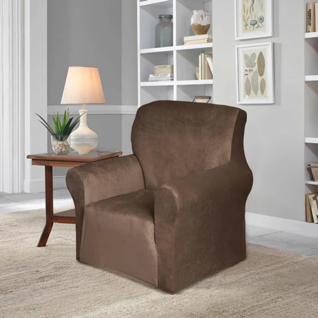 Чохол на крісло універсальний велюровий Love You 82119 какао