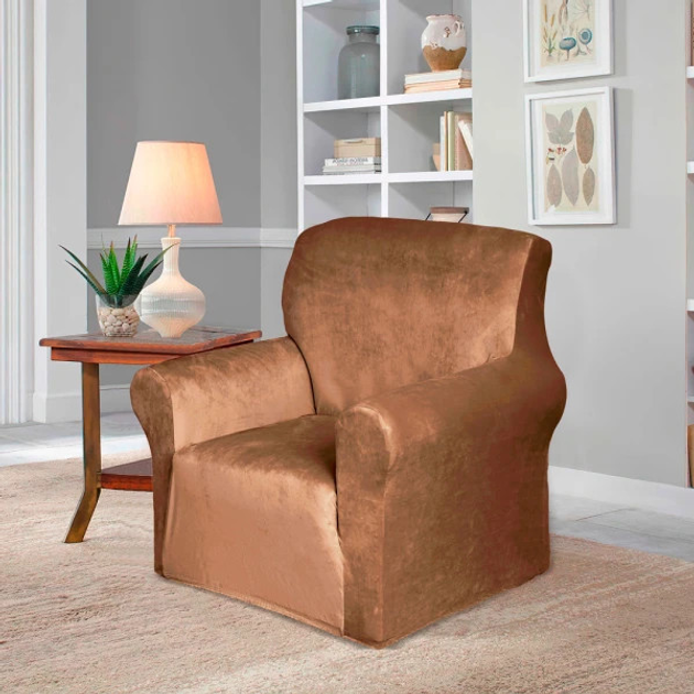 Чохол на крісло універсальний велюровий Love You 82142 світло-коричневий