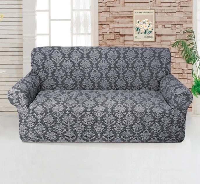 Чохол на диван тримісний жакардовий без оборки Love You 81125 сірий 5130759