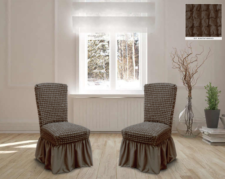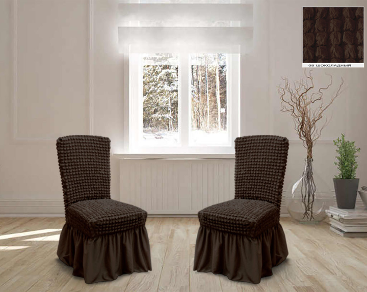 Чохли на стільці з спідницею 6шт, Шоколадні