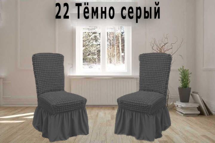 Чохли на стільці з спідницею 6шт, Темно-сірі