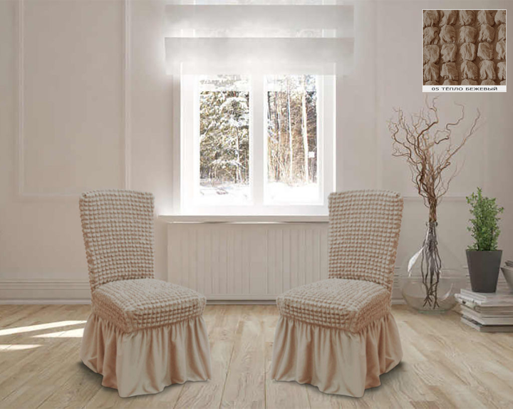 Чохли на стільці з спідницею 6шт, 05 Бежеві