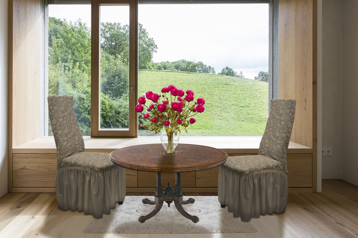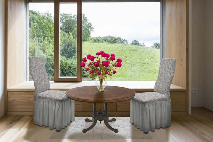 Жакардові чохли на стільці Roza зі спідницею Світло-сірий