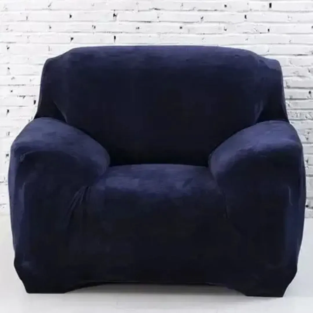Гнучкий велюровий чохол на офісне поворотне крісло Domidekor, універсальний з підлокітниками, розмір L (3410) синій